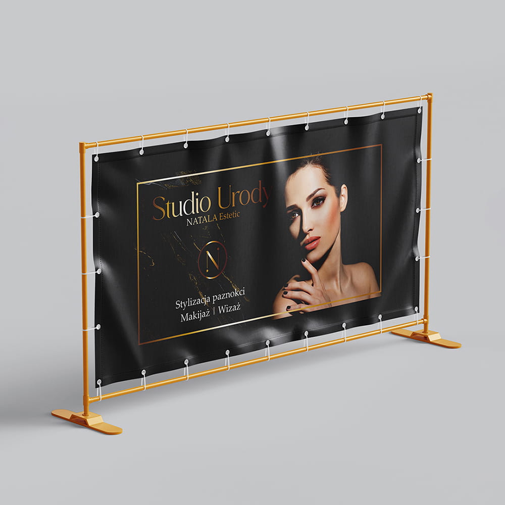 Profesjonalne banery reklamowe, projekt i druk w stylu beauty glamour oraz estetyczne materiały promocyjne dla różnych branż. Tworzę spójne, przyciągające uwagę projekty dopasowane do wizerunku marki – od koncepcji graficznej po gotowy wydruk.