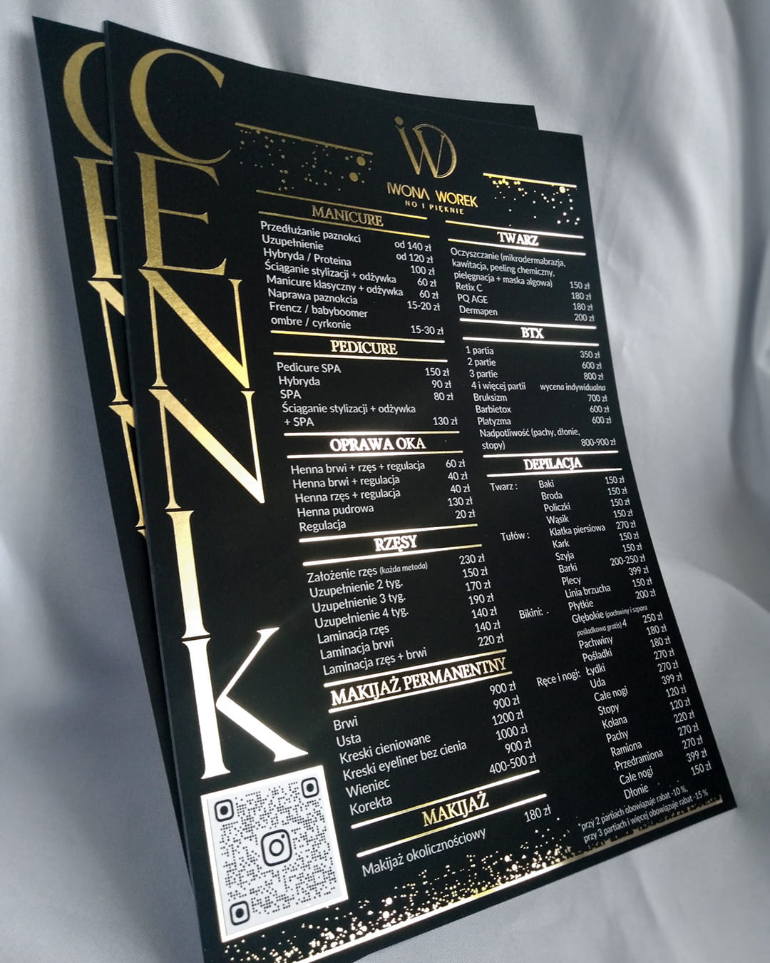 Cennik w formacie A4, pokryty lakierem soft touch + złocenie - 5 sztuk.