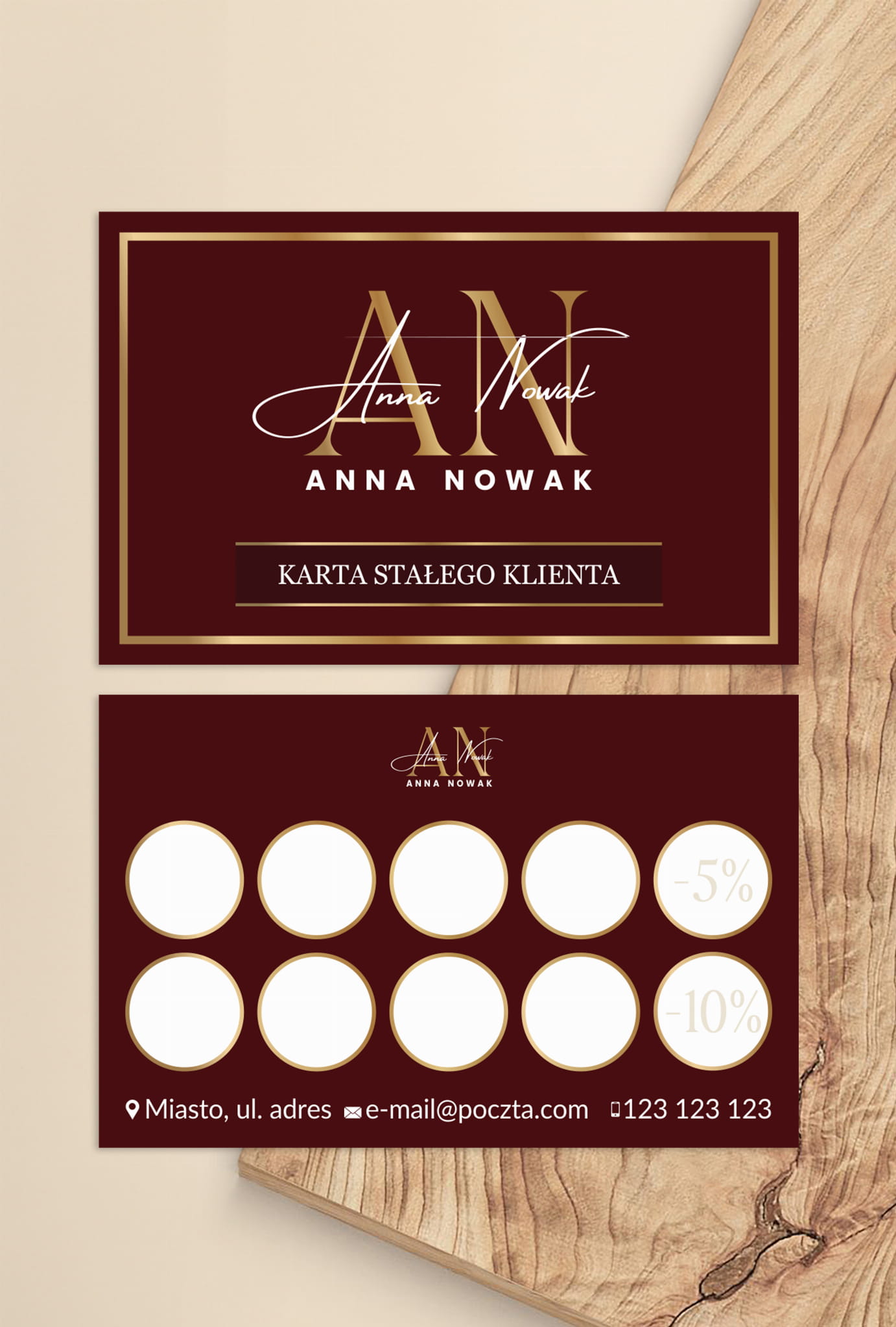 Karty biznesowe na kartonie premium 350 g/m2. Świetnie spełniają funkcję kart rabatowych, terminarzy itd.