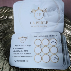 Karty biznesowe na kartonie premium 350 g/m2. Świetnie spełniają funkcję kart rabatowych, terminarzy itd.
